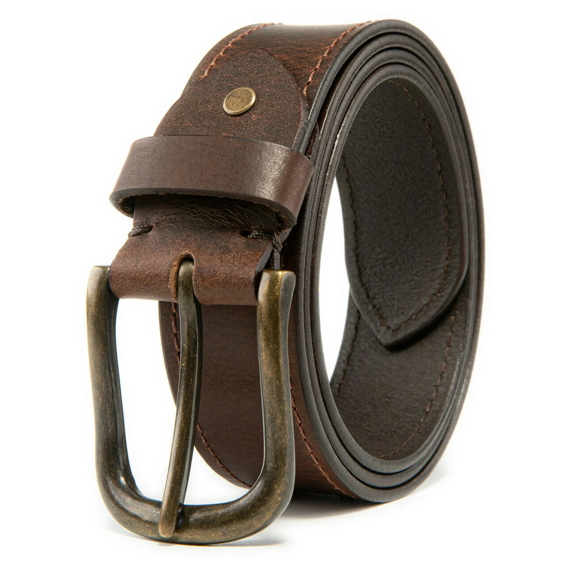 Durable and Premium Quality-1 and 1/2 inches width belt strap is handmade by Full Grain Leather. High-quality alloy buckle is SCRATCH RESISTANT which made to last. Our genuine leather belt is highly constructed for a longer endurance and amazing performance. A difference you can feel. Fit-ORDER ONE SIZE LARGER THAN YOUR WAIST/PANTS SIZE.For example, if your waist/pants size is 32 inch, select size 32/34. If your waist/pants size is 34 inch, select size 36/38. Perfect for All -So comfortable it will become your everyday belt!Perfect for use every day as a work belt,a casual belt,a dress belt.This belt can literally do it all.If you are tired of the belts that always fall apart give us a try.Treat yourself to the belt that can replace ALL of your old belts. Ideal Gift for Dear Ones-The belt is a great gift for any men who appreciates a high quality everyday essential.It’s great for Christmas,a birthday,anniversary,Father’s Day,or graduation for a boyfriend,husband,Dad,brother,uncle,or a grandpa. No Risk Purchase--100% Guarantee available. Any product issue makes you dissatisfy with this belt, just let us know , Free Replacement without hesitation.