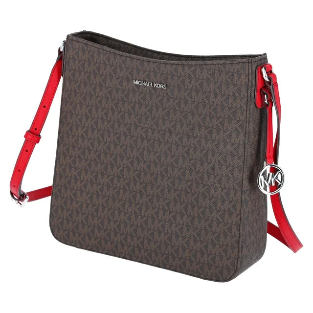 Michael Kors Women's Jet Set Travel Large Messenger Bag Crossbody Brown MK Bright Red