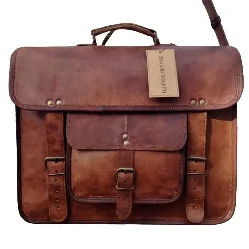 - DIMENSION– 11" height, 15" wide, 5" depth. This brown leather bag has 2 large compartments inside the bag that can accommodate books, laptop, accessories, 1 front and 2 zipper pocket with shoulder straps which is very useful to keep your mobile and handy stuff. Leather laptop bag are perfect for all day use for work.