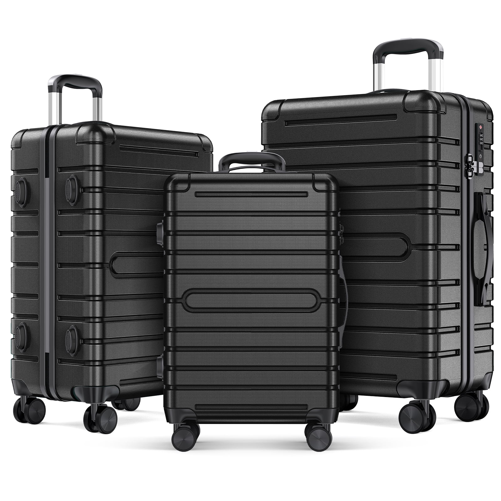 - HIGHT-QUALITY 3 PIECE LUGGAGE SETS: ABS+PC hardshell material, durable and lightweight, with a full glossy features textured finish that resists compression and scratches.